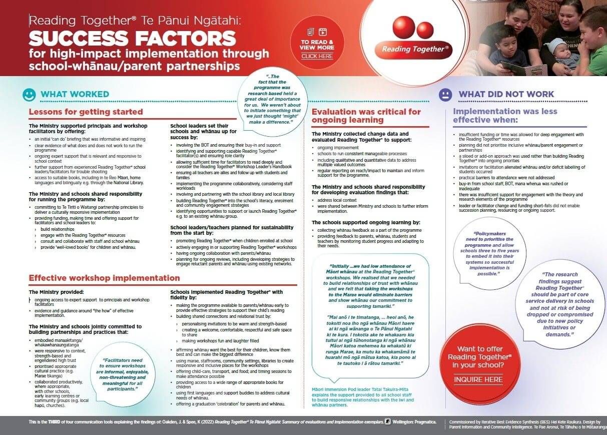 Reading Together® Te Pānui Ngātahi summary of evaluations and implementation